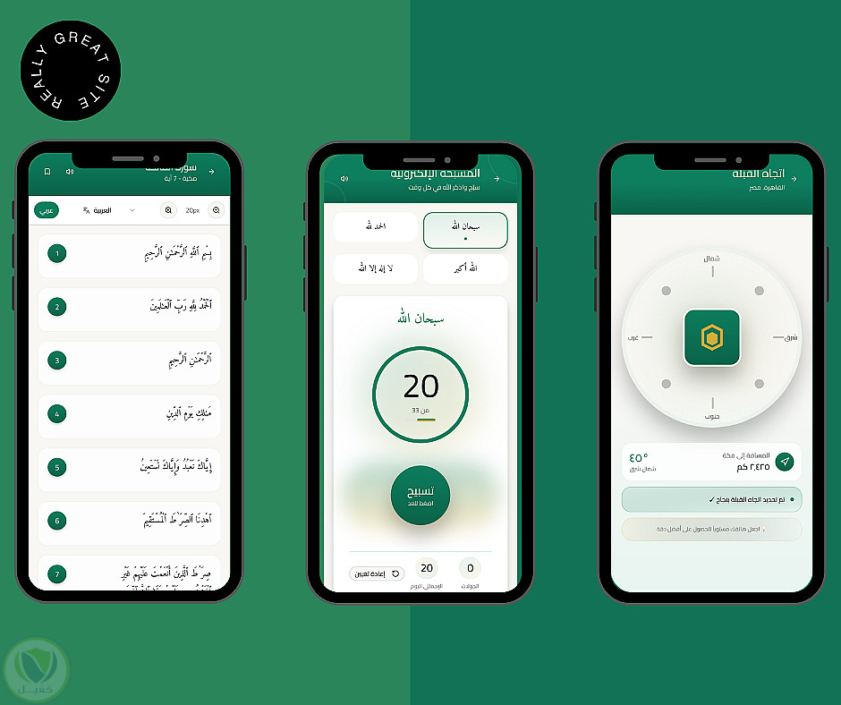- تصميم بسيط وجذاب يساهم في تعزيز التركيز والخشوع أثناء الاستخدام