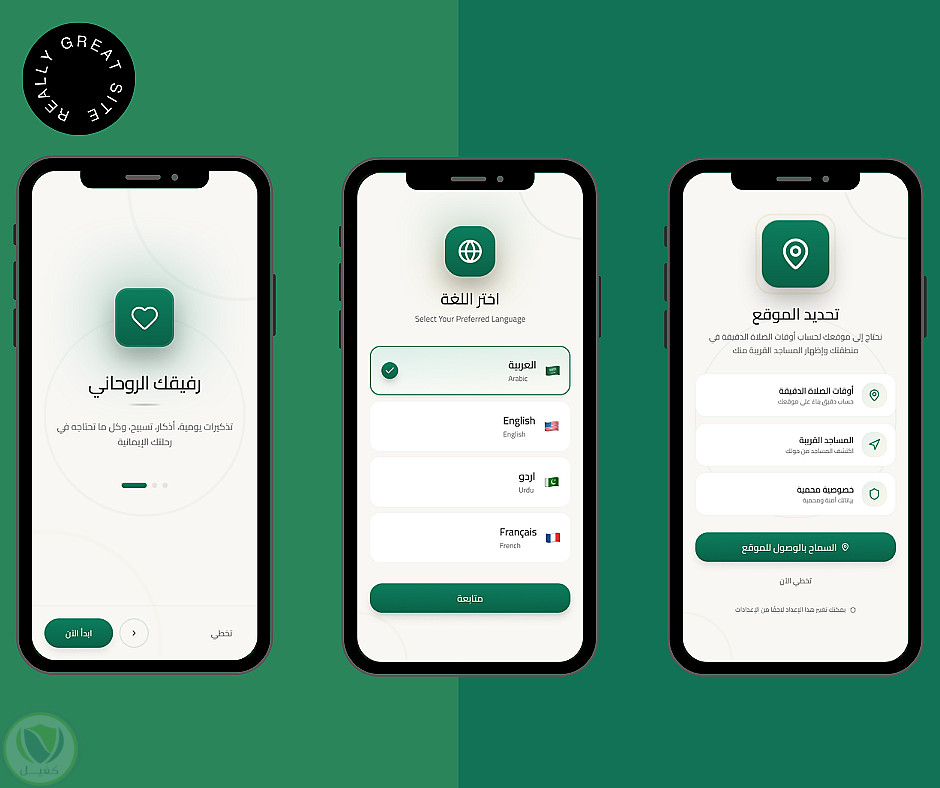 - تحديد وعرض مواقيت الصلاة بدقة بناءً على موقع المستخدم