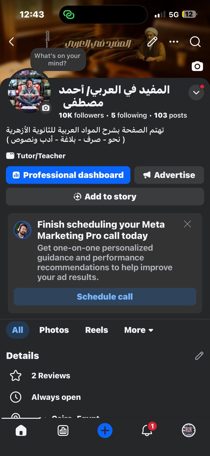 مسكت صفحة مدرس لغة عربيه ازهري في سوهاج كانت الصفحه 1437 متابع الآن تجاوزنا 11 الف متابع قناة اليوتيوب كانت 75 الف...