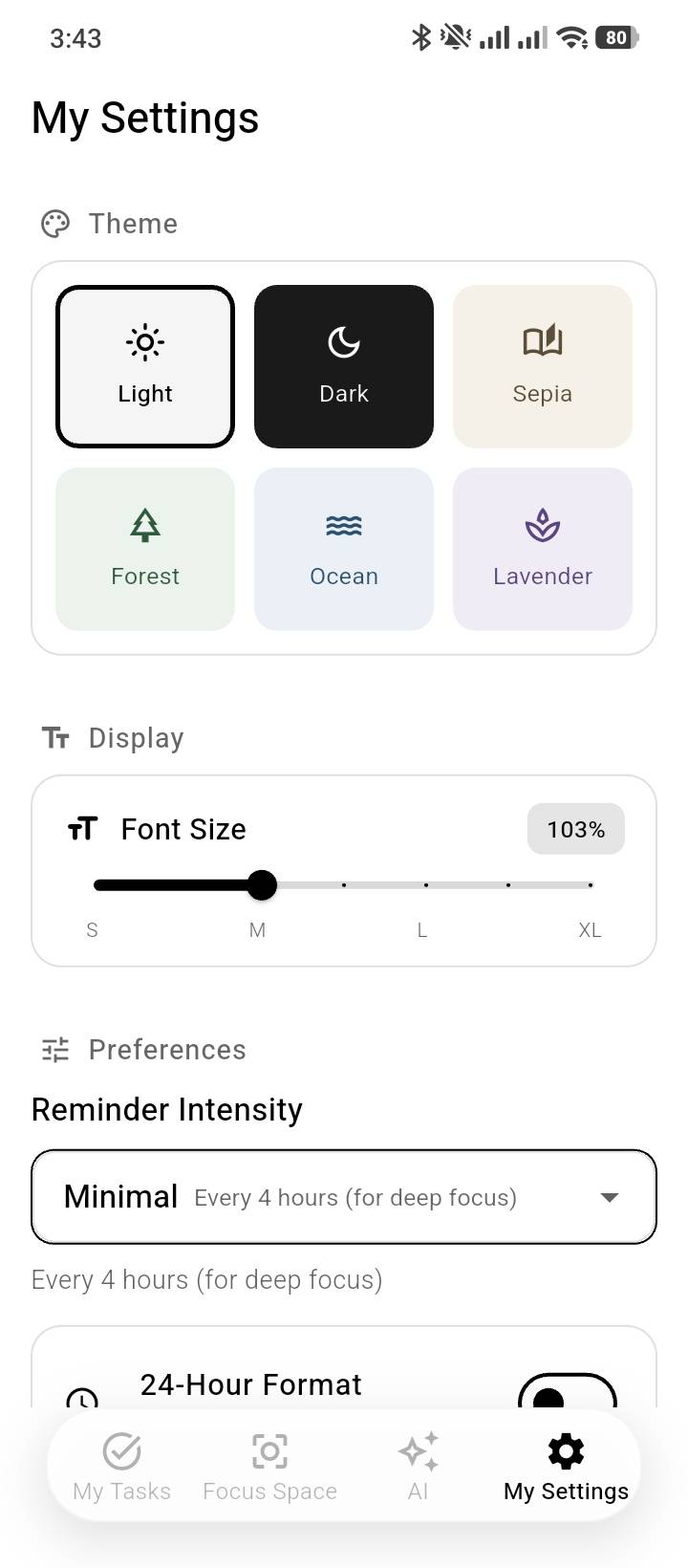 مشروع يهدف إلى إعادة تعريف مفهوم "المكتب الرقمي" من خلال توفير بيئة عمل خالية من التشتت. تم تصميم التطبيق ليجمع بين إدارة المهام اليومية وأدوات التركيز في واجهة مستخدم موحدة وسلسة، مما يساعد المستخدمين على الدخول في حالة "العمل العميق" (Deep Work) بكفاءة عالية.