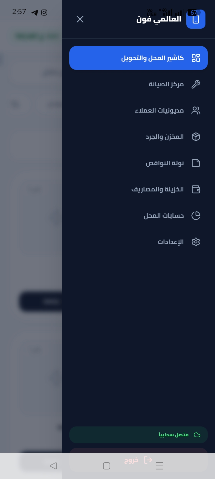 تطبيق كامل ل اداره محل موبيلات فيه خاصيه حسابه الرصيد والعموله والمصاريف ومديونيات المحل والخرج