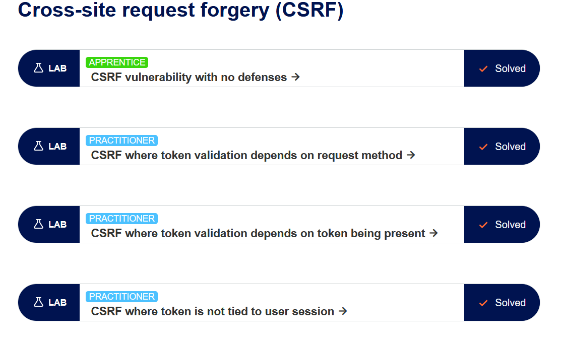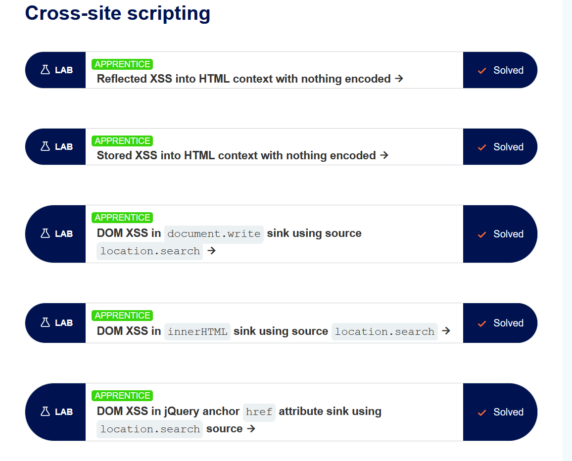جزء من شغلي علي لابات في Portswigger على الثغرات المشهورة مثل XSS, SQL Injection, CSRF