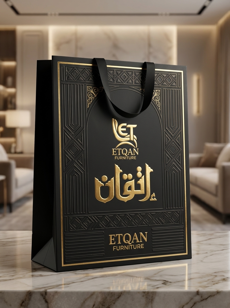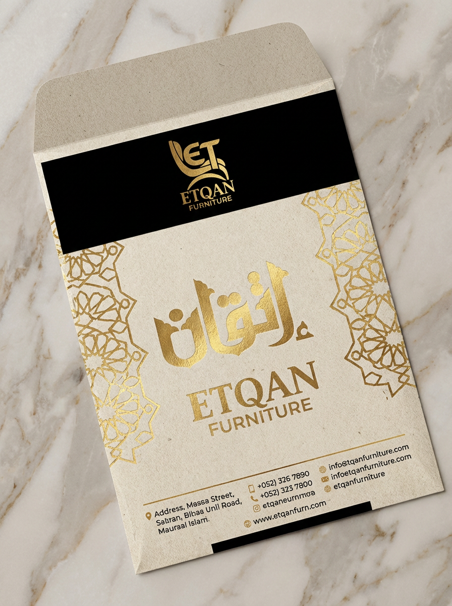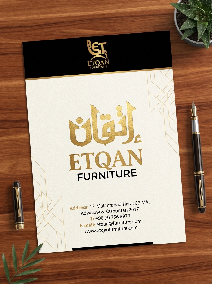 في عالم الأثاث الراقي، لا يبيع العميل مجرد قطع خشبية، بل يبيع "نمط حياة" وشعوراً بالتميز. من هذا المنطلق، قمت بتصميم الهوية البصرية لعلامة "إتقان "، لتكون انعكاساً حقيقياً لاسمها؛ حيث يمتزج فيها الفن المعماري مع الخط العربي الأصيل ليخلق انطباعاً أولياً يدوم.