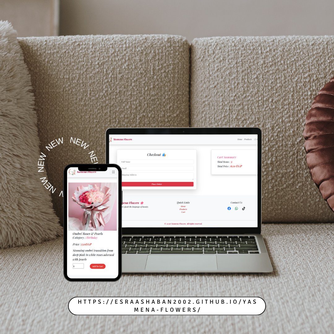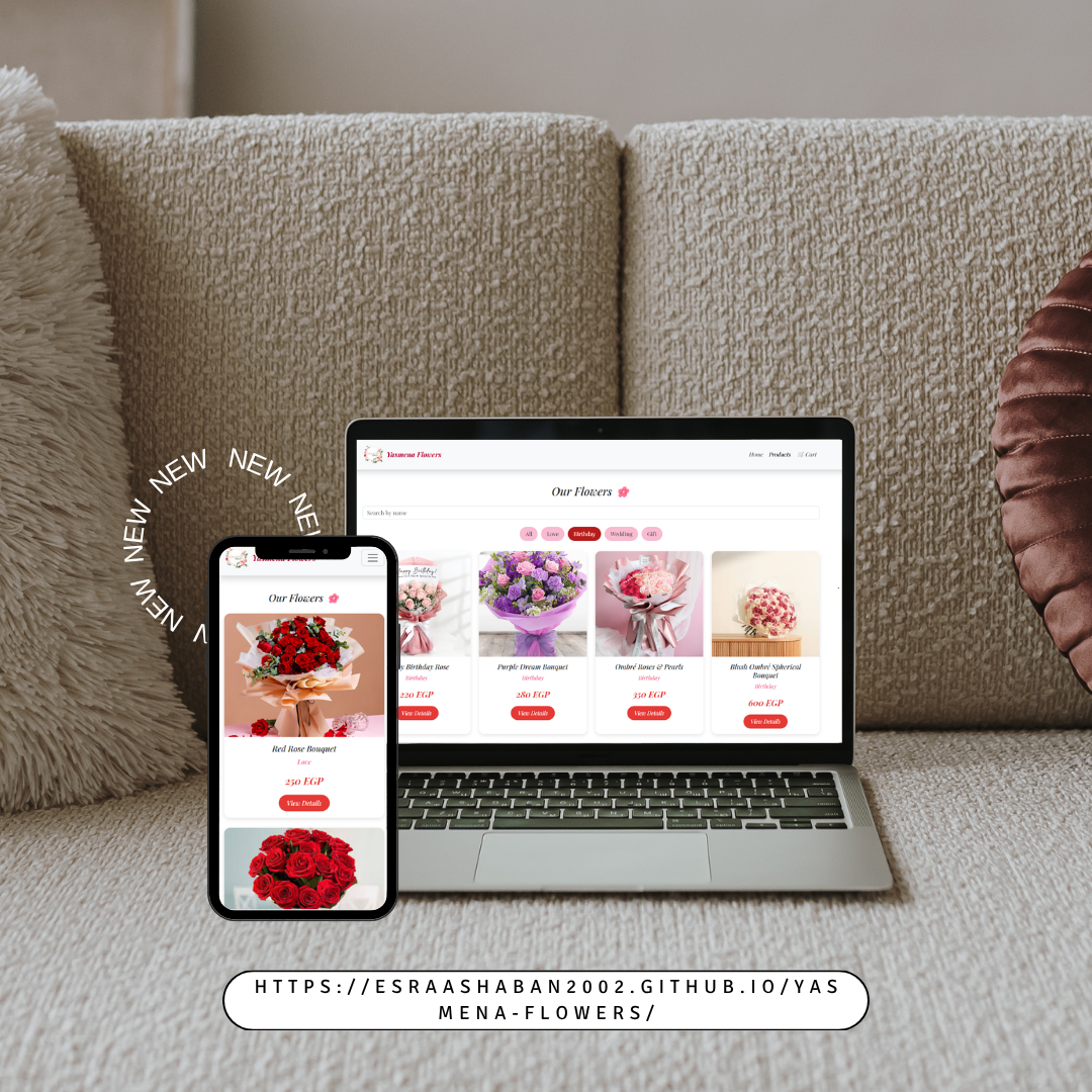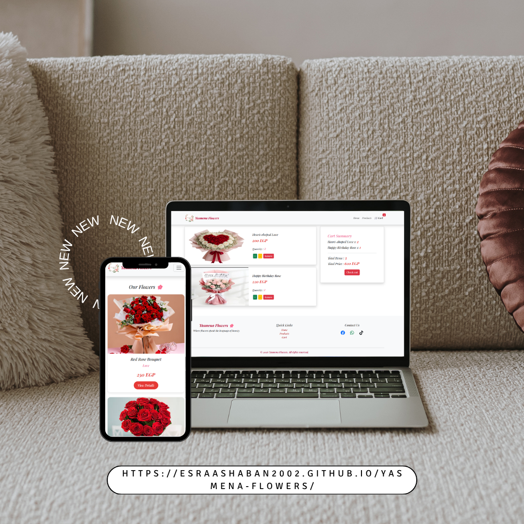 قمت بتصميم وتطوير موقع إلكتروني لبيع الزهور باسم Yasmena Flowers، يهدف إلى تقديم تجربة مستخدم بسيطة وجذابة لعرض المنتجات.