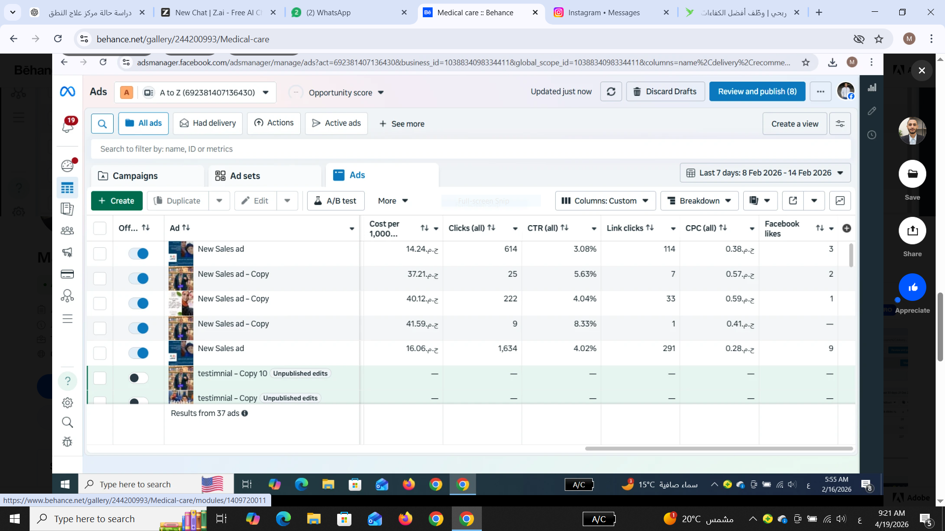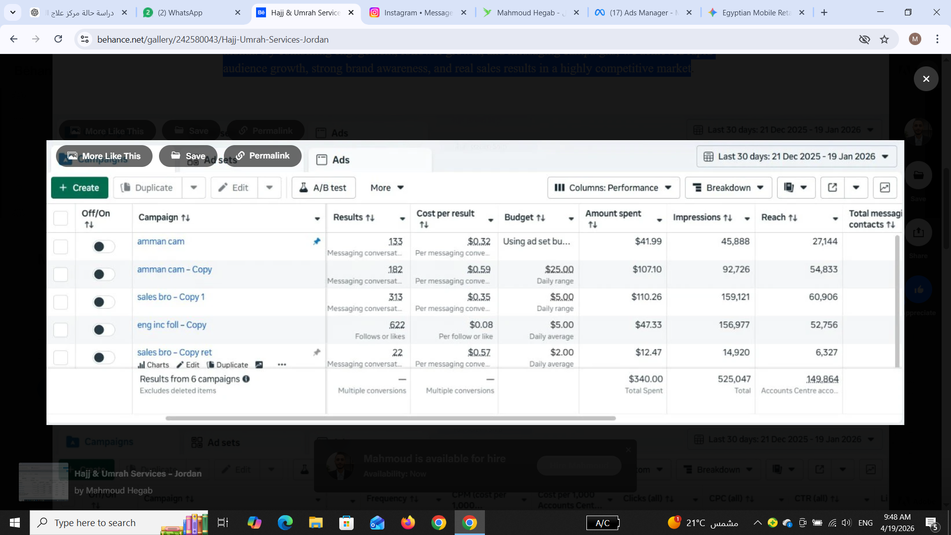 تم تشغيل عدة إعلانات وكرييتيفات مع عروض مختلفة لاستهداف جمهور واسع قائم على الاهتمامات.