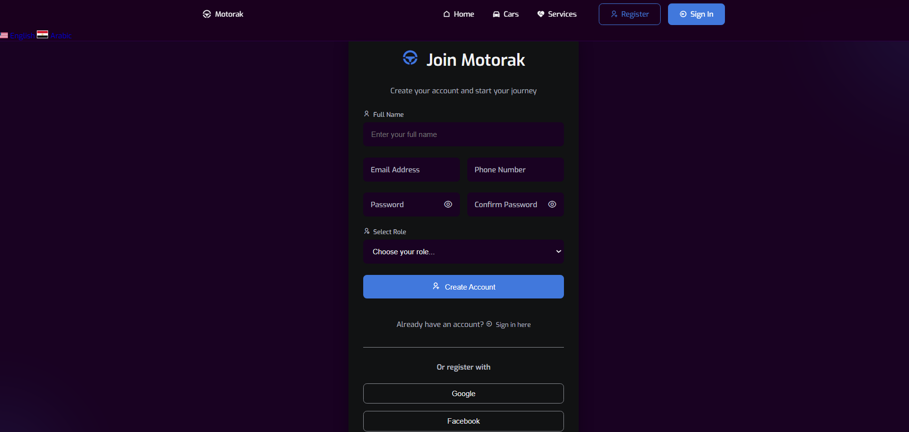Motorak هي منصة ويب متكاملة تجمع بين خدمات بيع وتأجير السيارات وصيانتها في مكان واحد. تم تصميم النظام ليدعم 3 أدوار رئيسية بصلاحيات مختلفة، مع واجهات مستخدم منفصلة لكل دور لتجربة سلسة وآمنة.