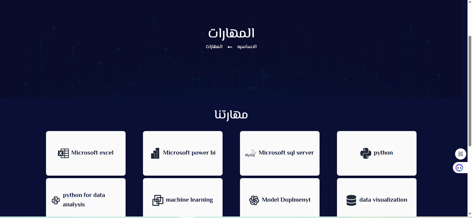 قمت بتطوير موقع إلكتروني احترافي لمطور بيانات، يمثل معرض أعمال شخصيًا (Personal Portfolio) مصممًا بعناية فائقة. كان الهدف الأساسي من هذا المشروع هو بناء منصة رقمية قوية تمكن المطور من عرض خبراته العملية، مهاراته التقنية، ومشاريعه المنجزة بطريقة جذابة ومنظمة للغاية، مما يعزز فرصته في جذب عملاء محتملين جدد أو الحصول على فرص عمل قيمة في مجال تحليل وتطوير البيانات.