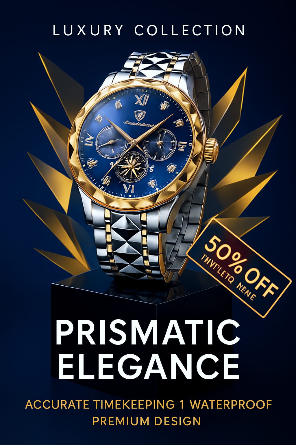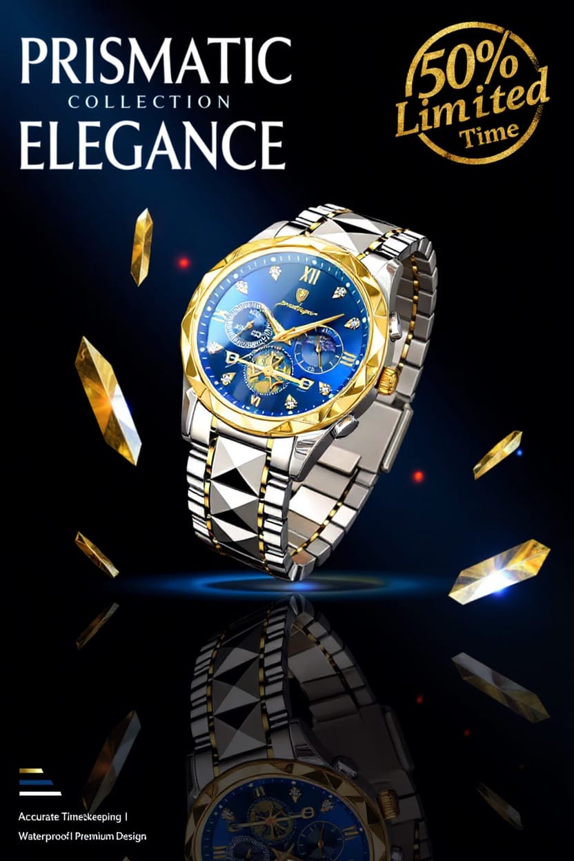قمت بتصميم إعلان احترافي لمنصات التواصل الاجتماعي، مخصص لمجموعة ساعات "Prismatic Elegance" الفاخرة. كان الهدف الأساسي من هذا العمل هو إبراز الفخامة المطلقة والجاذبية البصرية الفريدة للمنتج، وتعزيز مكانته كخيار راقٍ وموثوق به لدى الجمهور المستهدف.