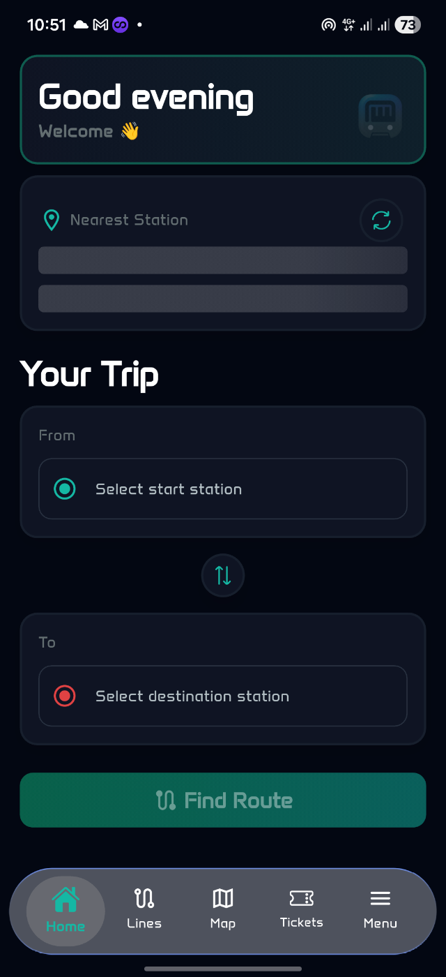مع روتا تقدر تدور على المحطات بسهولة، تشوف خطوط المترو، وتاخد أسرع طريق لوجهتك. التطبيق متصمم يوفر وقتك ويساعد الركاب يتنقلوا في شبكة المترو من غير أي تشويش.