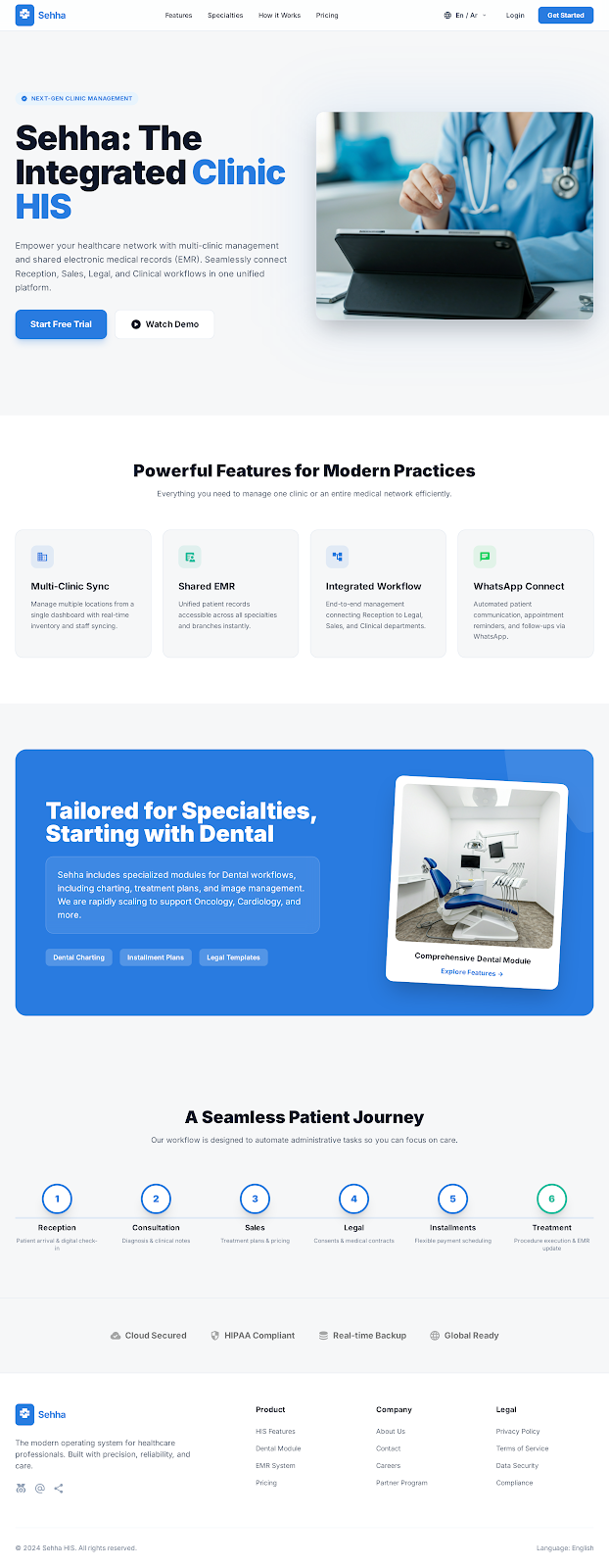 بدايةً من تسجيل المرضى وحجز المواعيد، وصولاً إلى إدارة الجلسات العلاجية، الحسابات المالية، والموارد البشرية،