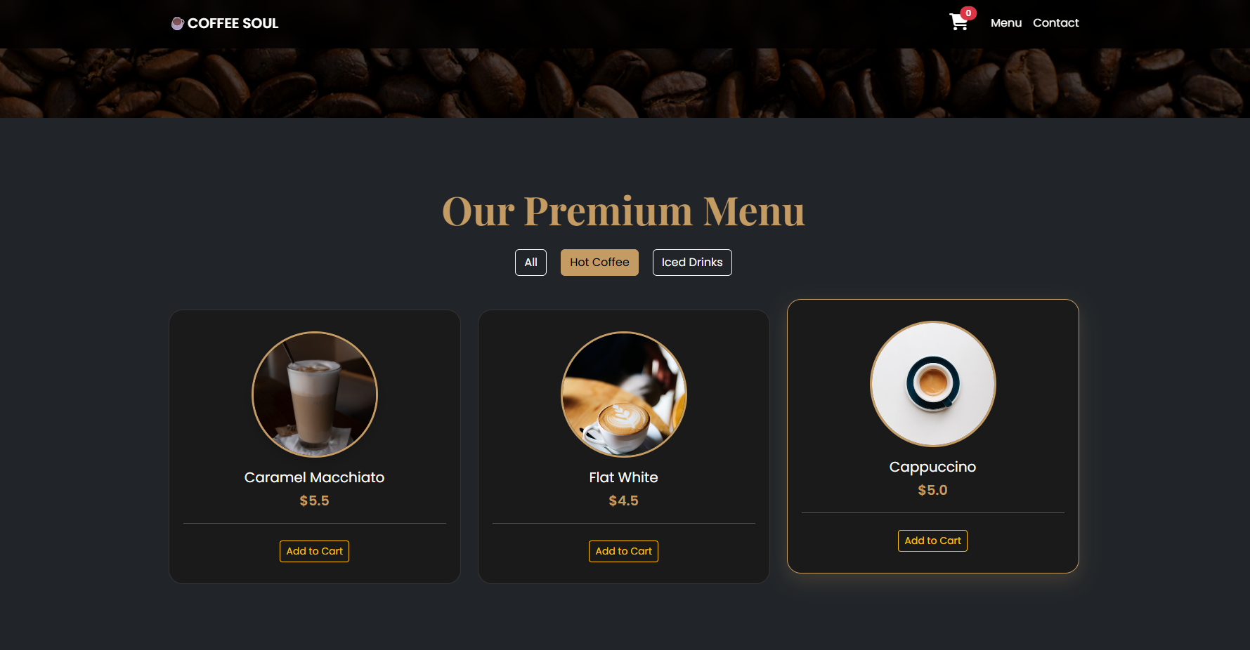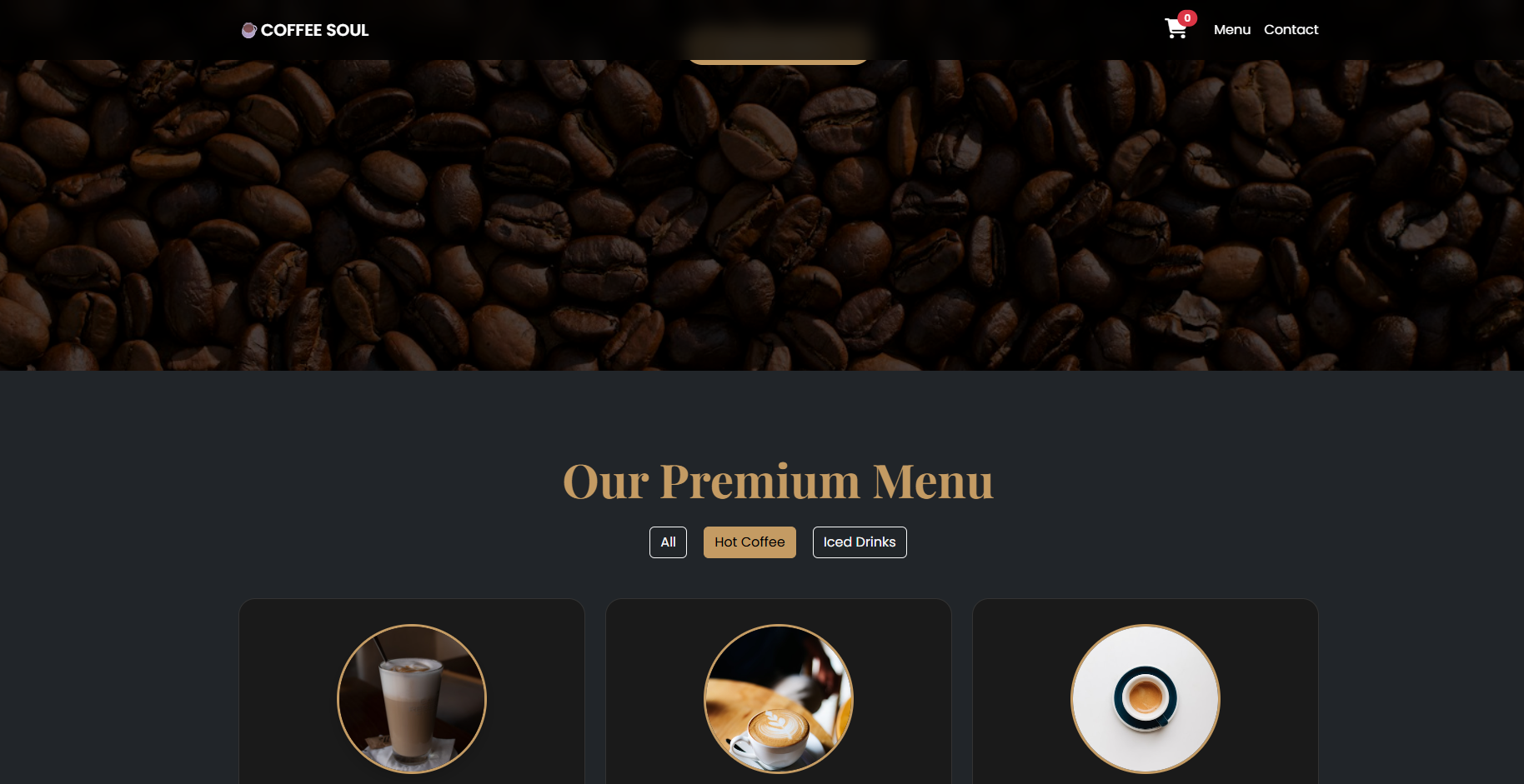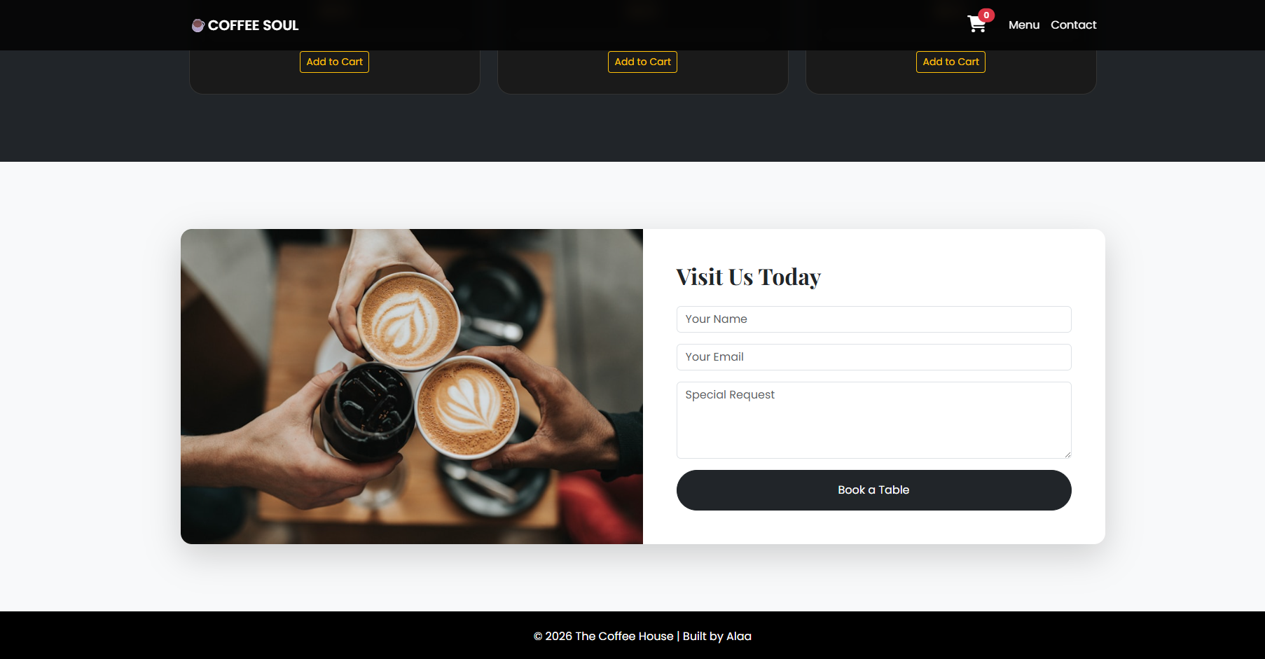 صفحة هبوط (Landing Page) عصرية وجذابة لكافيه مختص.