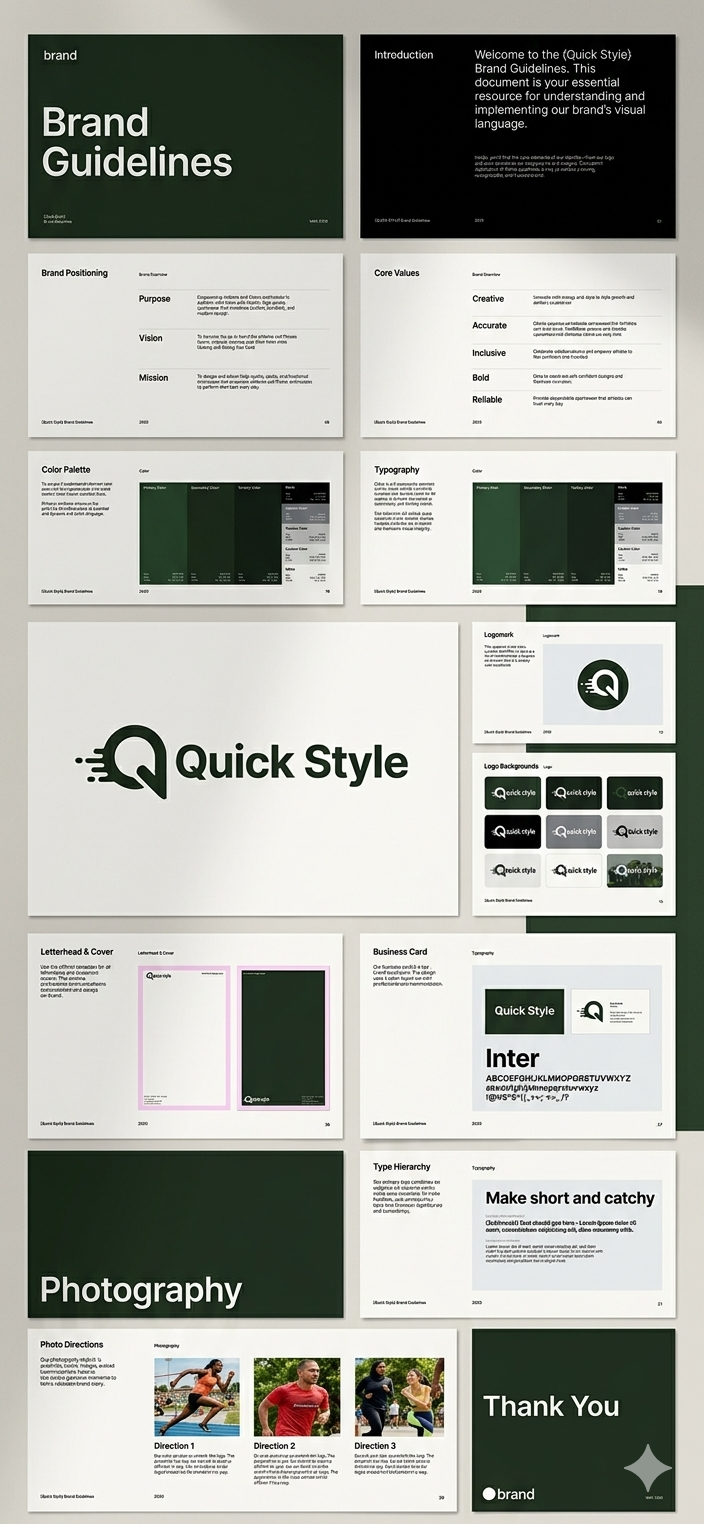 Quick Style هو براند ملابس يركز على الأسلوب العصري والسرعة في مواكبة الموضة. كان الهدف من المشروع هو إنشاء هوية بصرية حديثة وبسيطة تعكس فكرة السرعة والأناقة في نفس الوقت.