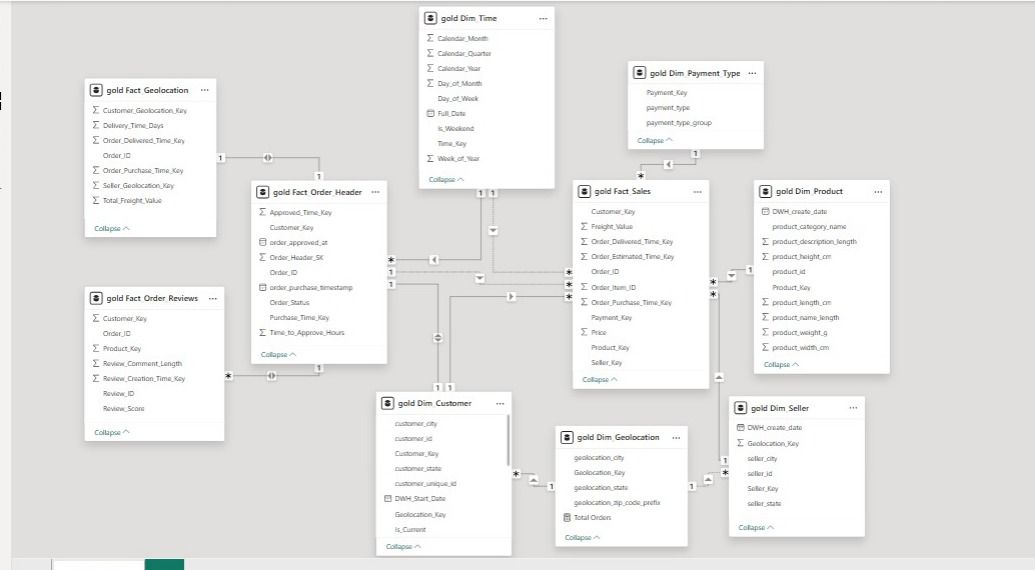 قمت بتصميم وبناء مستودع بيانات متكامل (E-commerce Data Warehouse) لتحليل بيانات منصة Olist للتجارة الإلكترونية، ومعالجة أكثر من 1.58 مليون سجل لاستخراج رؤى تجارية دقيقة ودعم اتخاذ القرار.