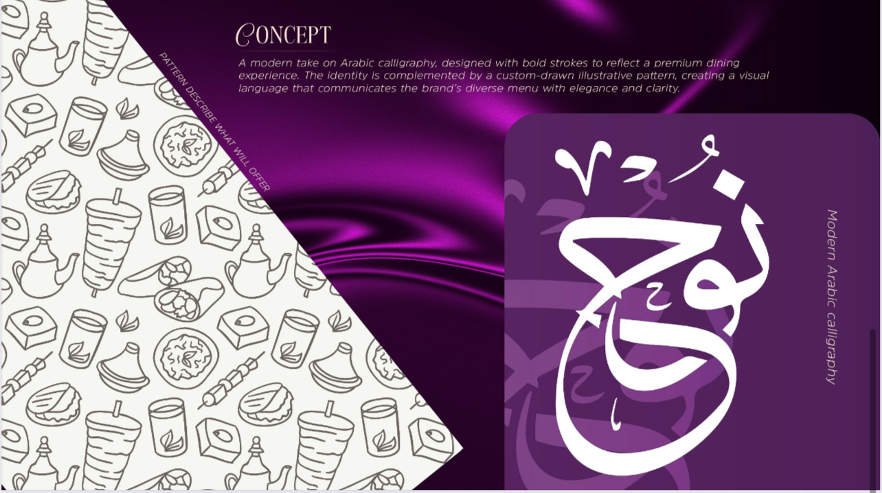 تم تصميم علامة نُوح لتكون أكثر من مجرد مطعم — بل تجربة بصرية متكاملة. كان الهدف هو بناء هوية بصرية تجذب الانتباه سواء د...