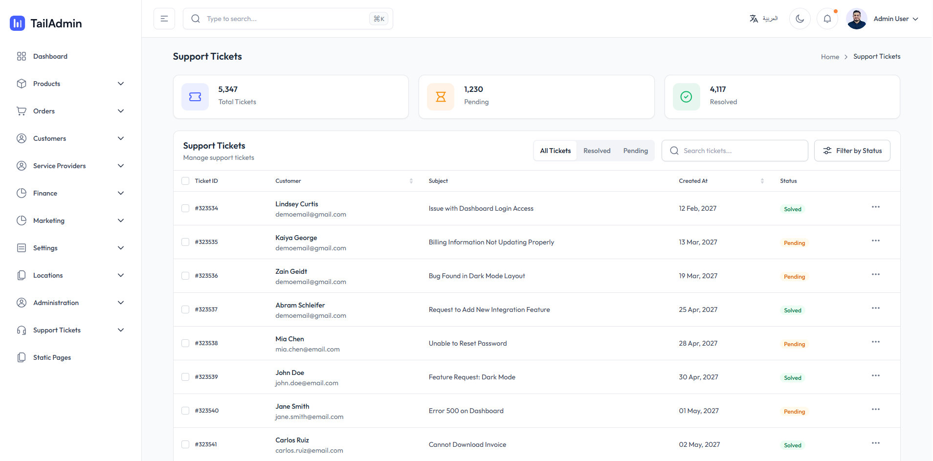 أبرز المميزات: تصميم متجاوب (Responsive): تعمل بكفاءة على جميع الأجهزة (موبايل، تابلت، ديسكتوب). واجهة مستخدم (UI/UX) مريحة: تسهل إدارة البيانات، المستخدمين، والإحصائيات بوضوح تام. أداء سريع: كود نظيف وخفيف يضمن سرعة التحميل. تعدد الاستخدامات: مناسبة لتطبيقات الـ SaaS، المتاجر الإلكترونية، وأنظمة الإدارة. سيتم تسليم المشروع مع كود نظيف وقابل للتطوير مستقبلاً."